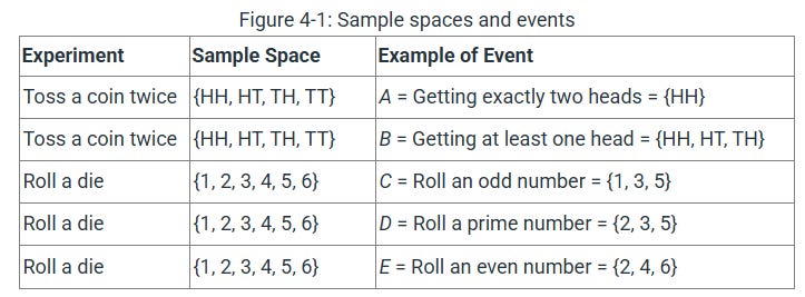 Sample Space: collection of all possible outcomes of the experiment. Usually denoted as S.